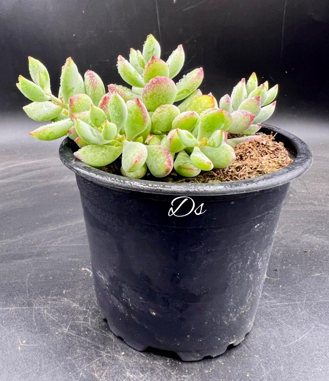 Sus hojas son muy carnosas y crecen en pares opuestos.